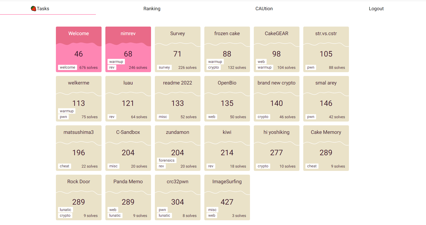2022.09.03일 토요일에 진행한 cakeCTF writeup이다.중앙대학교 동아리에 ctf를 경험해보자고 공지글을 올려 팀원을 모았다. 시스템 2명 웹 2명으로 진행한 ctftime의 첫 ctf. 결과는 처참했지만, 다른 사람들의 writeup을 보며 실력을 키워보고자 한다.