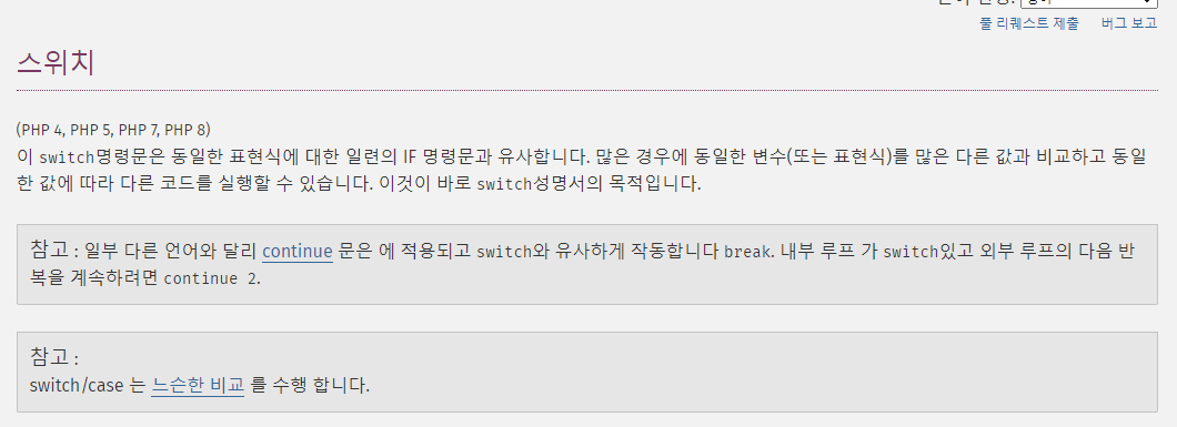 - php에서 case문은 ==으로 검사한다.