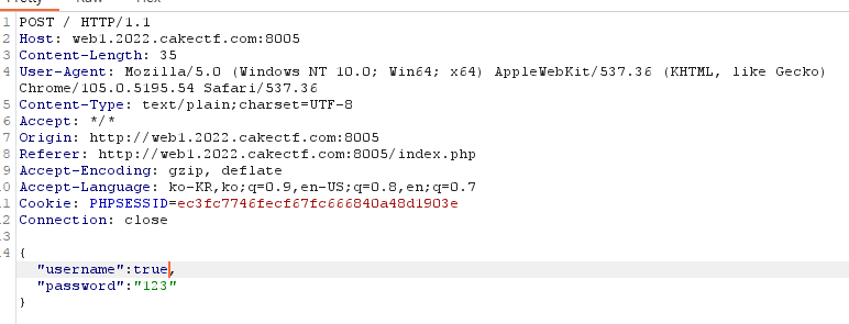 burp suite로 패킷을 가로채 username에 true를 입력하면